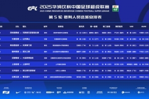 体育资讯4月5日讯 中国足协公布中超第5轮以及中甲第3轮裁判名单,高鹏执法亚泰vs泰山,李海新执法国安vs浙江。